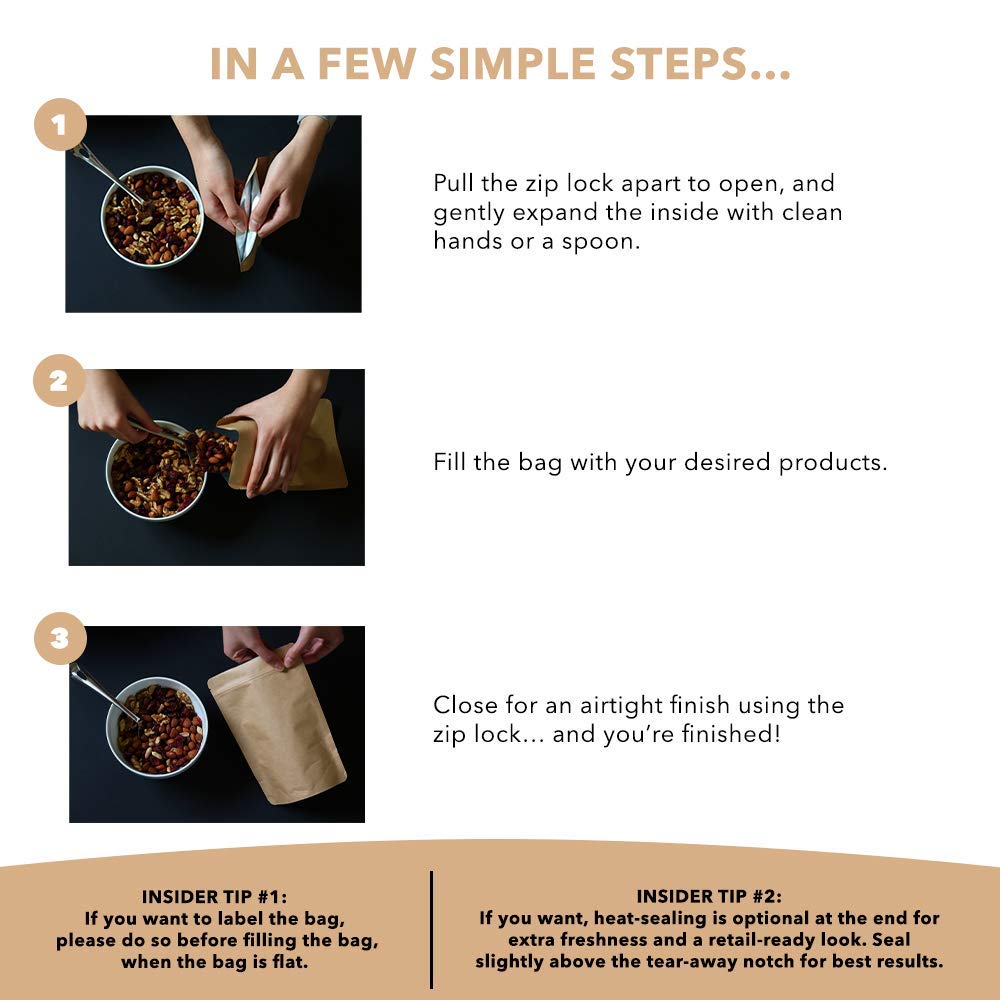 Deera Stand Up Ziplock Reusable Airtight Kraft Paper Storage Pouch (Without Window)
