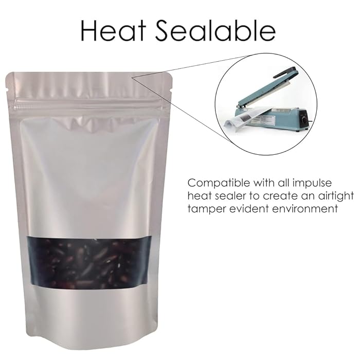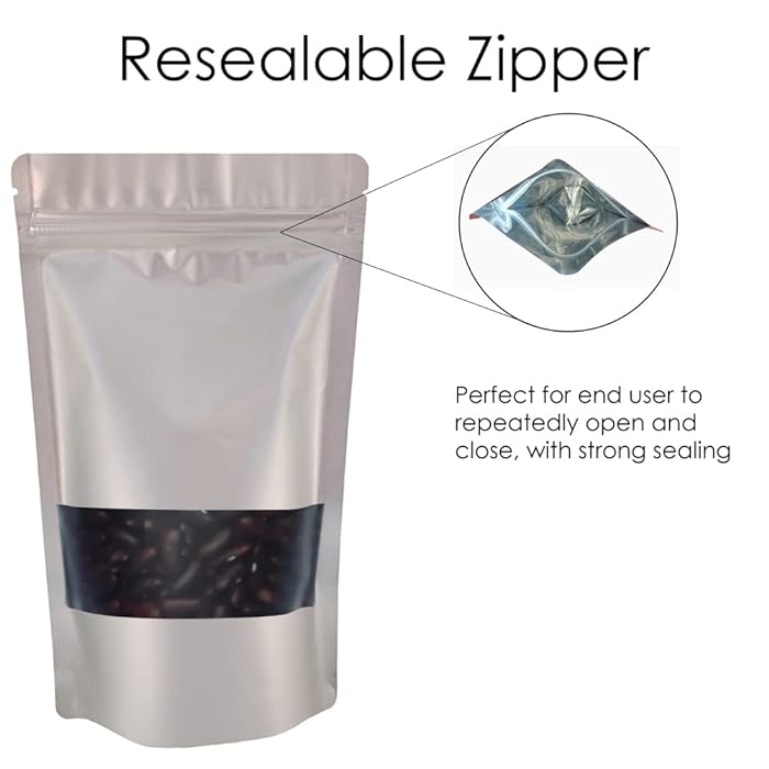 - Crystal-Clear Window Design: These pouches come with a transparent front window, offering a quick view of the contents inside. Perfect for showcasing your products on store shelves or in a pantry without opening the pouch, making them ideal for retail or personal use.