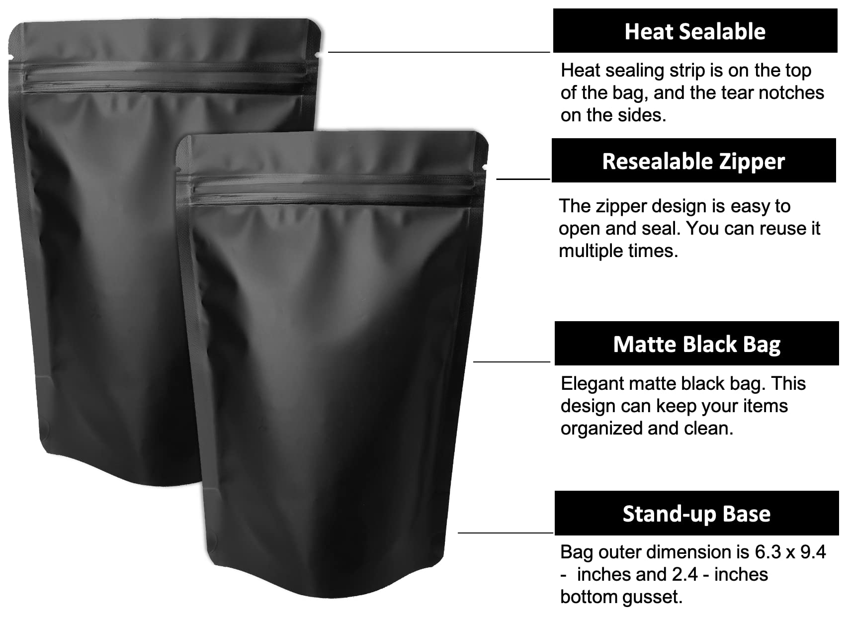 Deera Black Matt Finish Without Window Ziplock Pouch