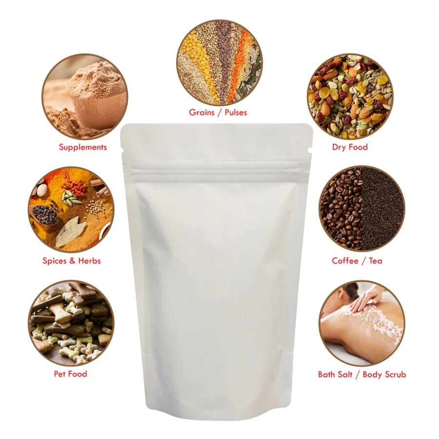 Eco-friendly standee ziplock pouch with protective aluminum lining and non-windowed design. Durable, airtight, and ideal for snacks, powders, and premium product packaging.