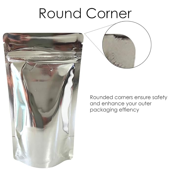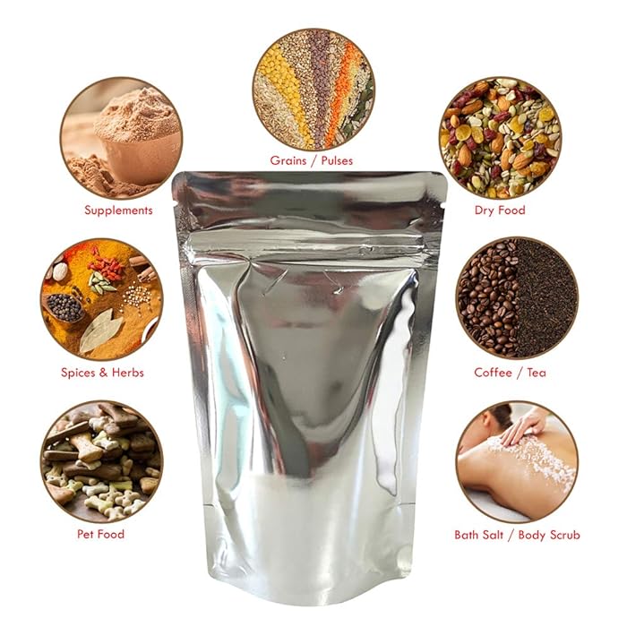 Elegant silver ziplock pouch with metallic finish on both sides. Durable, airtight, and versatile—perfect for snacks, cosmetics, accessories, and premium product packaging.