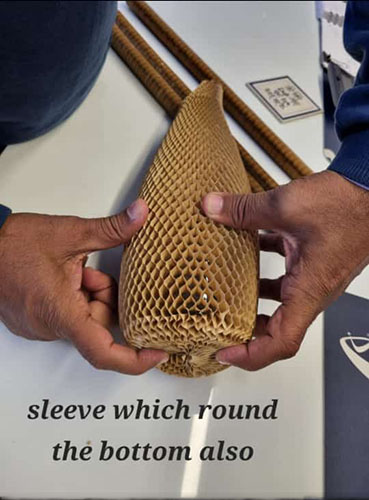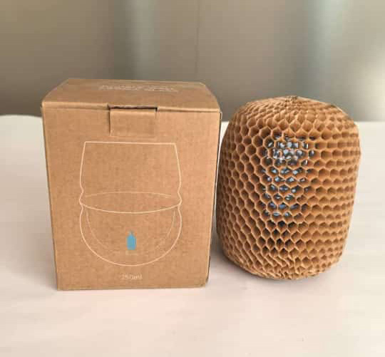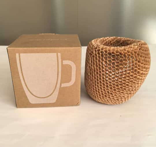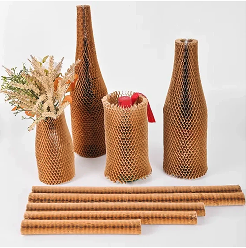 Eco-friendly kraft paper sleeves with a protective honeycomb design. Compact, easy to use, and ideal for safely wrapping fragile or premium items.