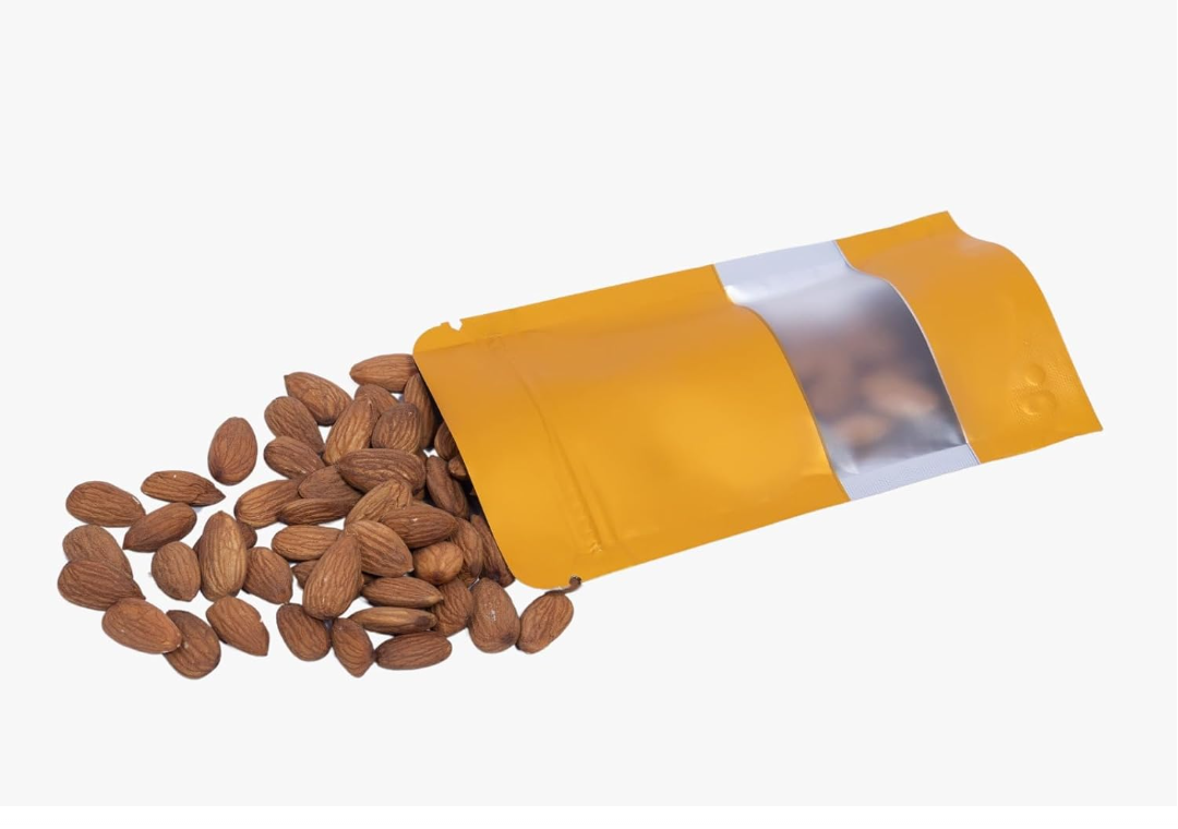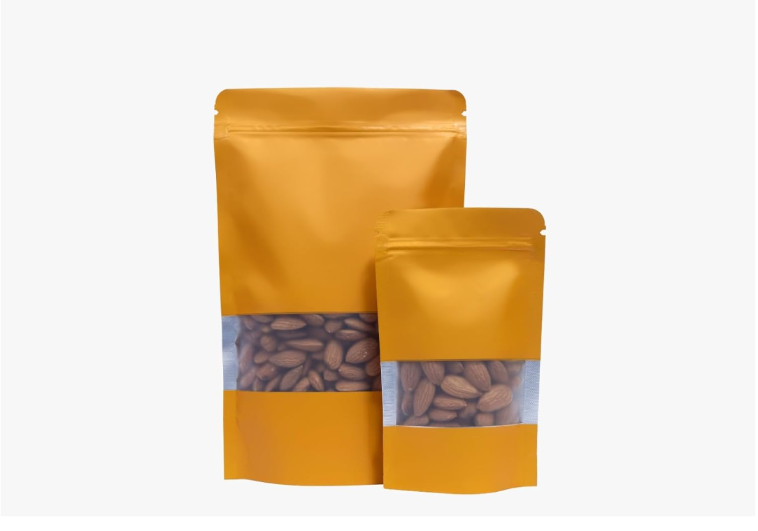 Deera Gold Matte Finish Stand-Up Ziplock Pouches With Window