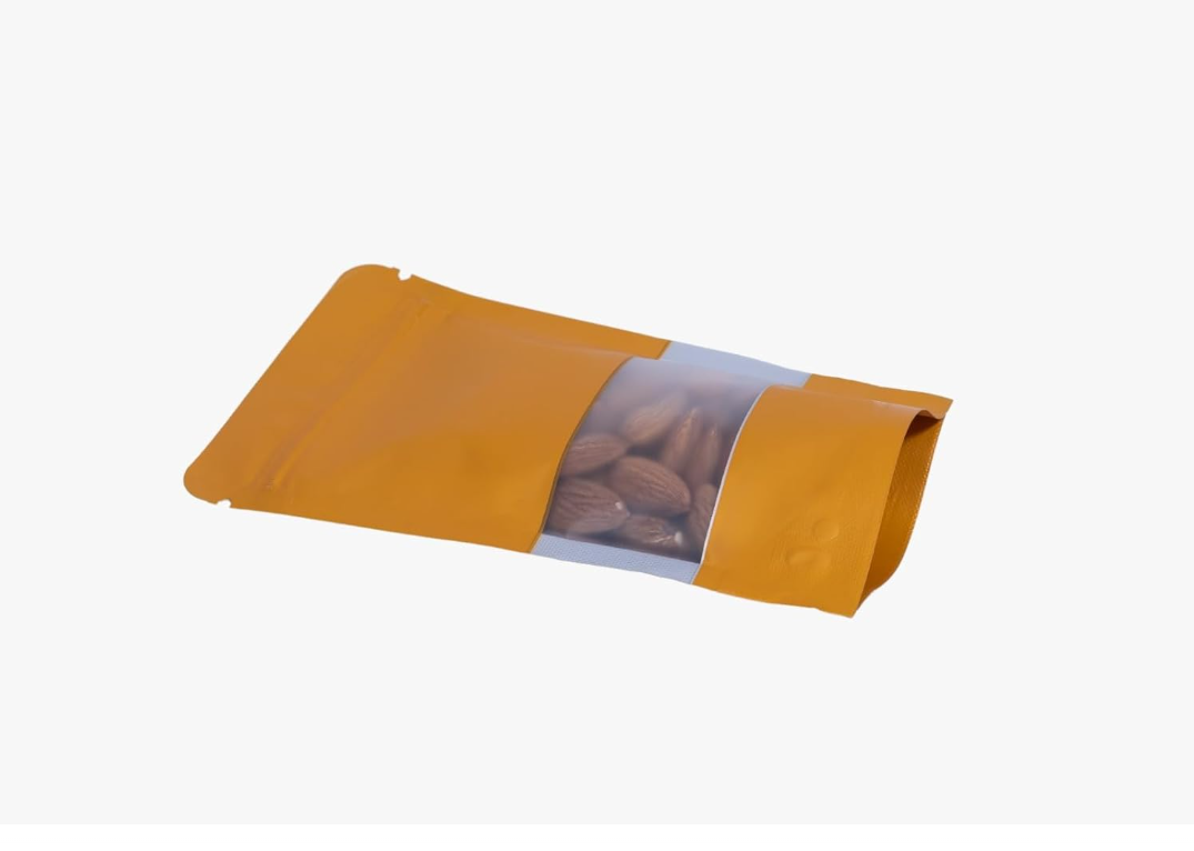 Deera Orange Matte Finish Stand-Up Ziplock Pouches With Window